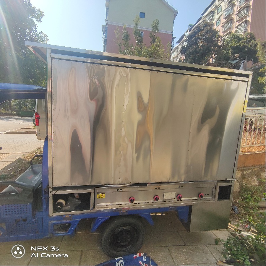 三轮车餐车,全新未使用不锈钢架,宗申牌燃油车,架子长2米,宽1米,餐车转让同技术,后面储物格一套,左右可抽拉式雨棚,中间可移动平台,价格美丽3888